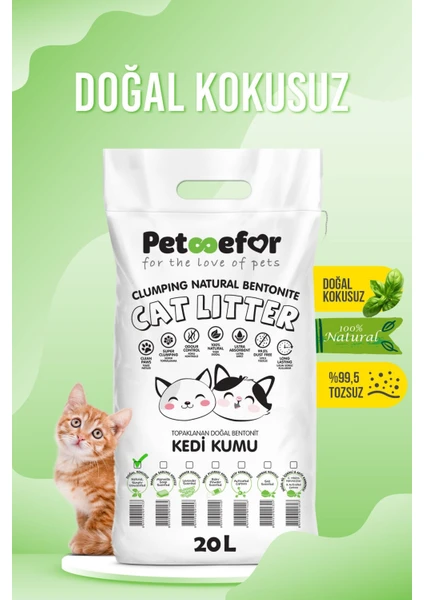Petefor 20 lt Kokusuz Topaklaşan Doğal Kedi Kumu Orta Tane Şeklinde Temiz ve Etkili