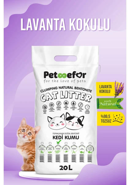 Petefor 20 lt Petefor Kedi Kumu Lavantalı Orta Tane Şeklinde Topaklaşan Özellikte Doğal Bentonit